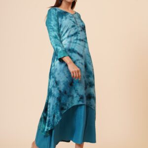 *Pattern : Kurti with wooden button placket at front, and Cuff *Color: Tie n Dye Blue